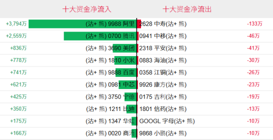 淡仓(认沽证及熊证)方面,近5日合计,阿里巴巴、腾讯控股、美团等相关淡仓分别约3794万、2559万及836万港元资金净流入部署;中国人寿、中国移动及中国平安等相关淡仓则分别约133万、46万港元及41万港元资金净流出。