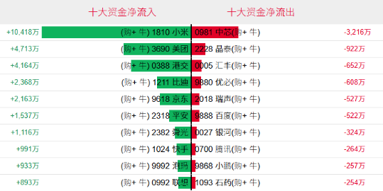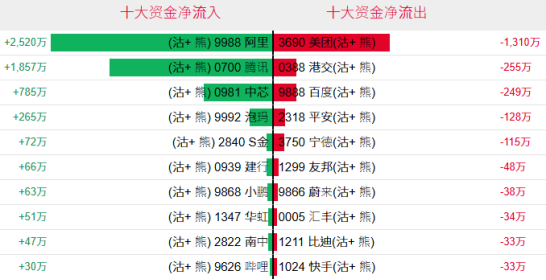 淡仓(认沽证及熊证)方面,近5日合计,阿里巴巴、腾讯控股、中芯国际等相关淡仓分别约2520万、1857万及785万港元资金净流入部署;美团、香港交易所及百度等相关淡仓则分别约1310万、255万港元及249万港元资金净流出。
