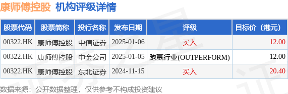 投行对该股的评级以买入为主,近90天内共有2家投行给出买入评级,近90天的目标均价为14.8港元。中信证券最新一份研报给予康师傅控股买入评级,目标价12港元。