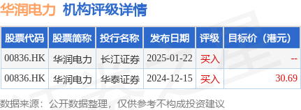 截至2025年2月18日收盘,华润电力(00836.HK)报收于17.96港元,上涨1.13%,换手率0.44%,成交量2280.56万股,成交额4.1亿港元。投行对该股的评级以买入为主,近90天内共有2家投行给出买入评级,近90天的目标均价为30.69港元。长江证券最新一份研报给予华润电力买入评级。