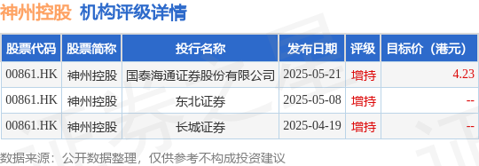 截至2025年6月20日收盘,神州控股(00861.HK)报收于3.12港元,下跌4.0%,成交量3244.4万股,成交额1.01亿港元。投行对该股的评级以增持为主,近90天内共有3家投行给出增持评级,近90天的目标均价为4.23港元。国泰海通证券股份有限公司最新一份研报给予神州控股增持评级,目标价4.23港元。