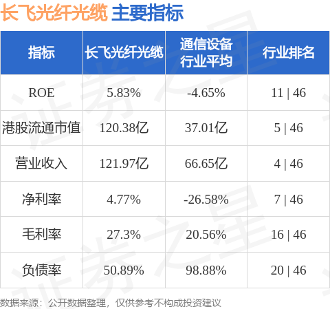 长飞光纤光缆港股市值120.38亿港元,在通信设备行业中排名第5。主要指标见下表: