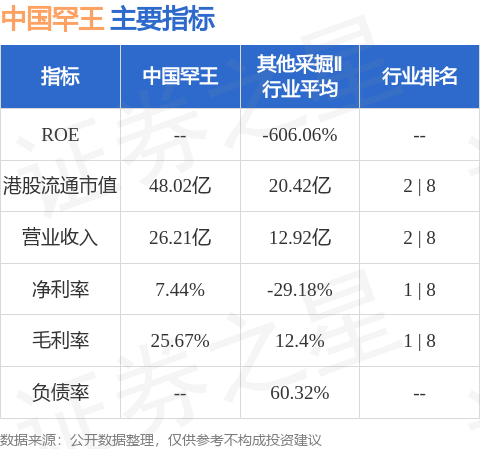 中国罕王港股市值48.02亿港元,在其他采掘Ⅱ行业中排名第2。主要指标见下表: