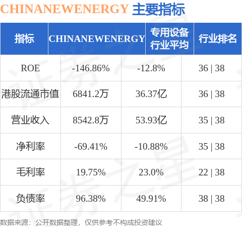 CHINANEWENERGY港股市值6841.2万港元,在专用设备行业中排名第36。主要指标见下表: