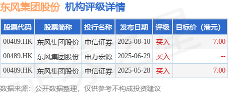 投行对该股的评级以买入为主,近90天内共有3家投行给出买入评级,近90天的目标均价为7港元。中信证券最新一份研报给予东风集团股份买入评级,目标价7港元。