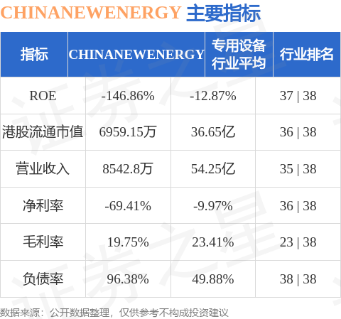 CHINANEWENERGY港股市值6959.15万港元,在专用设备行业中排名第36。主要指标见下表: