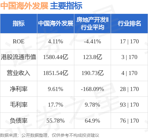 中国海外发展港股市值1580.44亿港元,在房地产开发Ⅱ行业中排名第3。主要指标见下表: