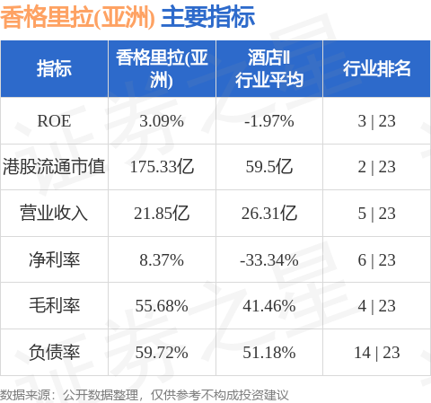 香格里拉(亚洲)港股市值175.33亿港元,在酒店Ⅱ行业中排名第2。主要指标见下表: