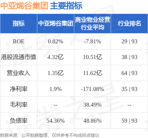 中亚烯谷集团港股市值4.32亿港元,在商业物业经营行业中排名第38。主要指标见下表: