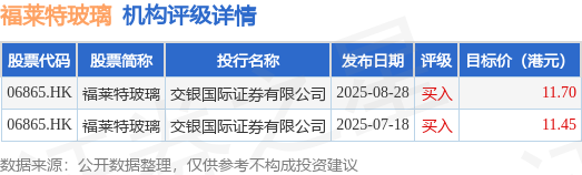 截至2025年8月29日收盘,福莱特玻璃(06865.HK)报收于10.52港元,上涨1.35%,成交量771.9万股,成交额8154.02万港元。投行对该股的评级以买入为主,近90天内共有2家投行给出买入评级,近90天的目标均价为11.58港元。交银国际证券有限公司最新一份研报给予福莱特玻璃买入评级,目标价11.7港元。