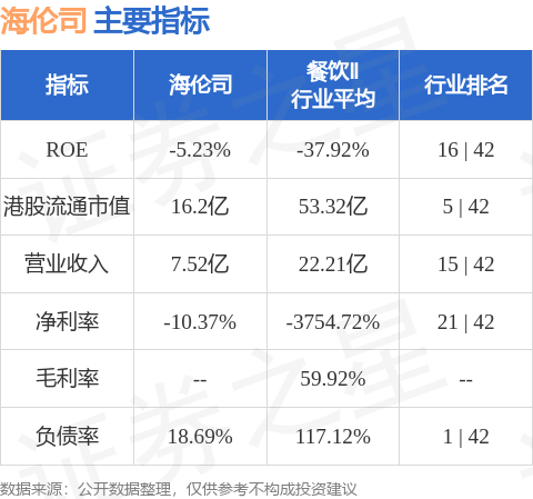 海伦司港股市值16.2亿港元,在餐饮Ⅱ行业中排名第5。主要指标见下表: