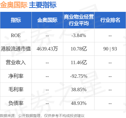 金奥国际港股市值4639.43万港元,在商业物业经营行业中排名第90。主要指标见下表: