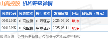 投行对该股的评级以增持为主,近90天内共有2家投行给出增持评级。山西证券最新一份研报给予山高控股增持评级。
