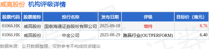 截至2025年9月19日收盘,威高股份(01066.HK)报收于5.78港元,下跌3.34%,成交量2421.83万股,成交额1.41亿港元。投行对该股的评级以跑赢行业(OUTPERFORM)为主,近90天内共有1家投行给出跑赢行业(OUTPERFORM)评级,近90天的目标均价为7.58港元。国泰海通证券股份有限公司最新一份研报给予威高股份增持评级,目标价8.76港元。