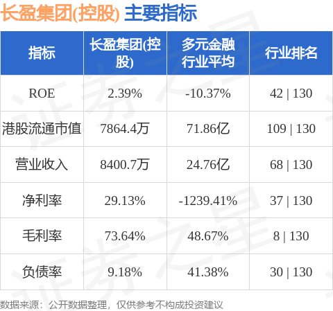 长盈集团(控股)港股市值7864.4万港元,在多元金融行业中排名第109。主要指标见下表: