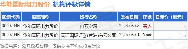 截至2025年9月23日收盘,华能国际电力股份(00902.HK)报收于5.72港元,上涨0.53%,成交量2923.0万股,成交额1.67亿港元。投行对该股的评级以买入为主,近90天内共有1家投行给出买入评级。申万宏源最新一份研报给予华能国际电力股份买入评级。