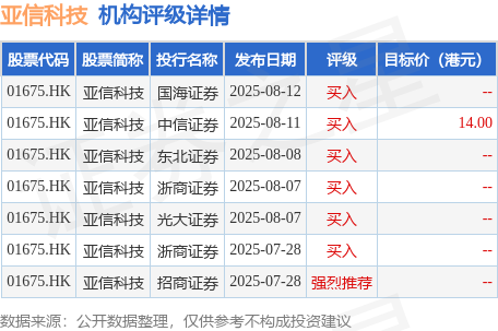 机构评级详情见下表: