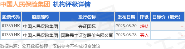 截至2025年9月25日收盘,中国人民保险集团(01339.HK)报收于6.33港元,下跌0.47%,成交量4010.74万股,成交额2.53亿港元。投行对该股的评级以增持为主,近90天内共有1家投行给出增持评级。兴证国际最新一份研报给予中国人民保险集团增持评级。