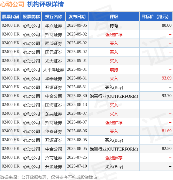 截至2025年9月26日收盘,心动公司(02400.HK)报收于78.55港元,下跌9.35%,成交量757.27万股,成交额6.13亿港元。投行对该股的评级以买入为主,近90天内共有7家投行给出买入评级,近90天的目标均价为86.2港元。华兴证券最新一份研报给予心动公司持有评级,目标价80港元。