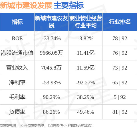 新城市建设发展港股市值9666.05万港元,在商业物业经营行业中排名第76。主要指标见下表: