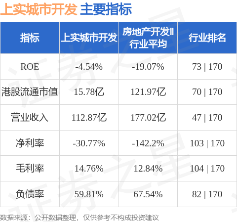 上实城市开发港股市值15.78亿港元,在房地产开发Ⅱ行业中排名第70。主要指标见下表: