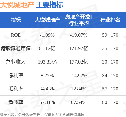 大悦城地产港股市值81.12亿港元,在房地产开发Ⅱ行业中排名第35。主要指标见下表: