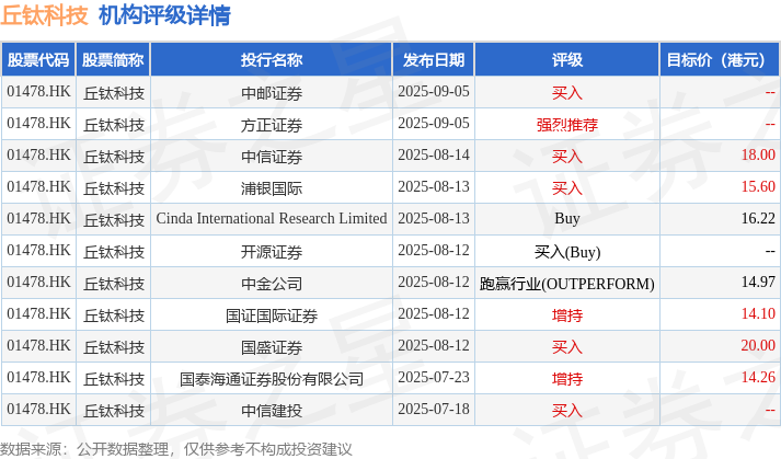 截至2025年10月10日收盘,丘钛科技(01478.HK)报收于15.88港元,下跌3.93%,成交量856.77万股,成交额1.36亿港元。投行对该股的评级以买入为主,近90天内共有5家投行给出买入评级,近90天的目标均价为16.16港元。中邮证券最新一份研报给予丘钛科技买入评级。