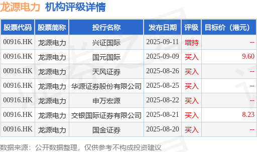 截至2025年10月13日收盘,龙源电力(00916.HK)报收于8.41港元,上涨2.56%,成交量5471.42万股,成交额4.56亿港元。投行对该股的评级以买入为主,近90天内共有6家投行给出买入评级,近90天的目标均价为8.91港元。兴证国际最新一份研报给予龙源电力增持评级。