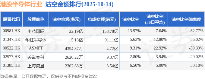 从沽空金额来看,中芯国际、华虹半导体、ASMPT沽空金额位居行业前三,分别为22.19亿港元、5.13亿港元、4394.87万港元。
