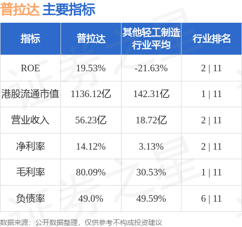普拉达港股市值1136.12亿港元,在其他轻工制造行业中排名第1。主要指标见下表: