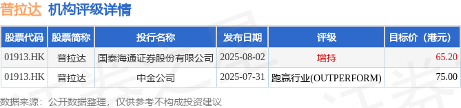 投行对该股的评级以跑赢行业(OUTPERFORM)为主,近90天内共有1家投行给出跑赢行业(OUTPERFORM)评级,近90天的目标均价为70.1港元。国泰海通证券股份有限公司最新一份研报给予普拉达增持评级,目标价65.2港元。