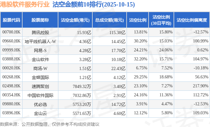 从沽空金额来看,腾讯控股、地平线机器人-W、网易-S沽空金额位居行业前三,分别为15.93亿港元、4.36亿港元、4.28亿港元。