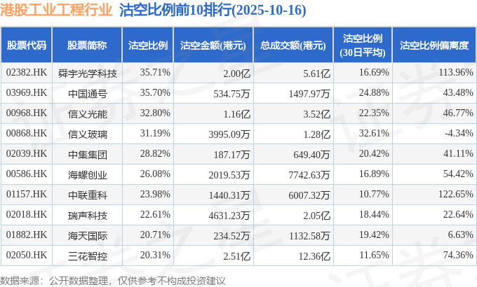从沽空比例来看,舜宇光学科技、中国通号、信义光能沽空比例位居行业前三,分别为35.71%、35.7%、32.8%。
