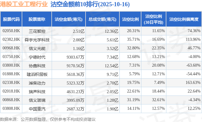 从沽空金额来看,三花智控、舜宇光学科技、信义光能沽空金额位居行业前三,分别为2.51亿港元、2亿港元、1.16亿港元。