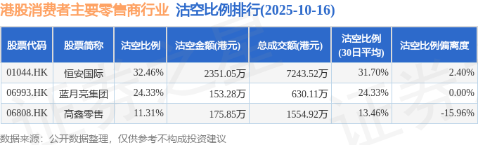 由于港股人民币柜台交易股票成交金额较小,沽空比例普遍偏高,为了避免干扰,已将人民币柜台交易股票从排行表格中剔除。