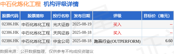 截至2025年10月17日收盘,中石化炼化工程(02386.HK)报收于6.97港元,下跌0.14%,成交量406.38万股,成交额2827.21万港元。投行对该股的评级以买入为主,近90天内共有2家投行给出买入评级,近90天的目标均价为6.6港元。光大证券最新一份研报给予中石化炼化工程买入评级。