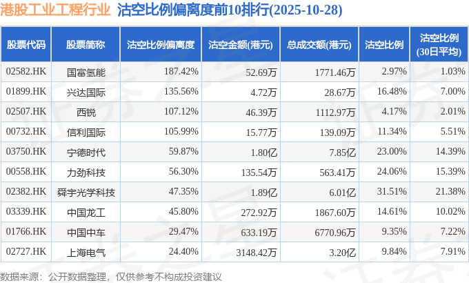 从沽空比例偏离度来看,国富氢能、兴达国际、西锐沽空比例偏离度位居行业前三,分别为187.42%、135.56%、107.12%。