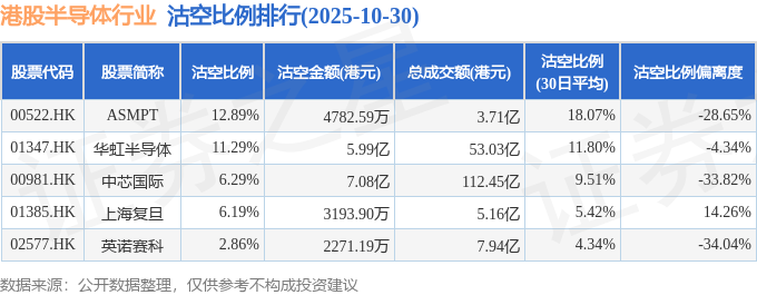 从沽空比例来看,ASMPT、华虹半导体、中芯国际沽空比例位居行业前三,分别为12.89%、11.29%、6.29%。