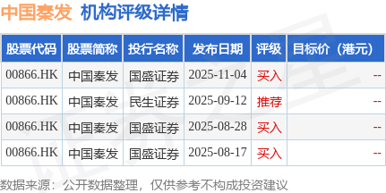 投行对该股的评级以买入为主,近90天内共有3家投行给出买入评级。国盛证券最新一份研报给予中国秦发买入评级。