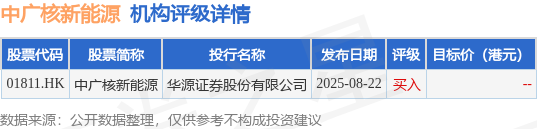 截至2025年11月11日收盘,中广核新能源(01811.HK)报收于2.81港元,下跌0.71%,成交量504.4万股,成交额1417.06万港元。投行对该股的评级以买入为主,近90天内共有1家投行给出买入评级。华源证券股份有限公司最新一份研报给予中广核新能源买入评级。