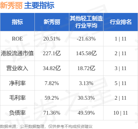 新秀丽港股市值227.1亿港元,在其他轻工制造行业中排名第2。主要指标见下表: