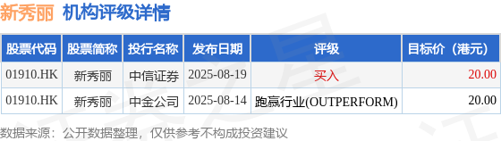 机构评级详情见下表: