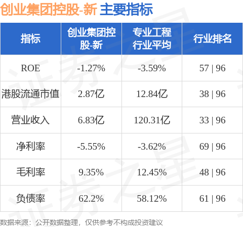 创业集团控股-新港股市值2.87亿港元,在专业工程行业中排名第38。主要指标见下表:
