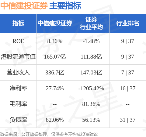 中信建投证券港股市值165.07亿港元,在证券行业中排名第9。主要指标见下表: