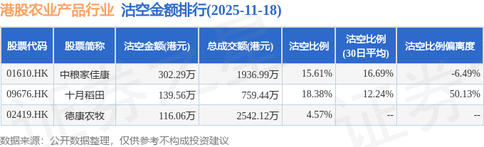 由于港股人民币柜台交易股票成交金额较小,沽空比例普遍偏高,为了避免干扰,已将人民币柜台交易股票从排行表格中剔除。
