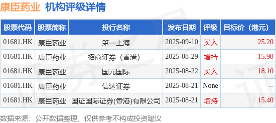 截至2025年11月19日收盘,康臣药业(01681.HK)报收于14.28港元,下跌3.12%,成交量229.01万股,成交额3282.36万港元。投行对该股的评级以增持为主,近90天内共有2家投行给出增持评级,近90天的目标均价为18.65港元。第一上海最新一份研报给予康臣药业买入评级,目标价25.2港元。
