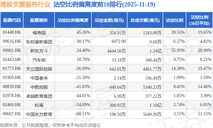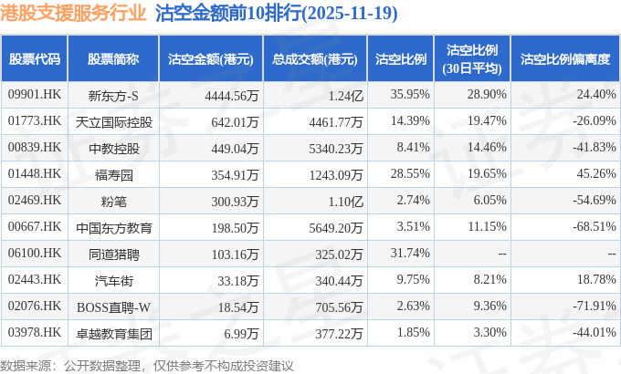 从沽空金额来看,新东方-S、天立国际控股、中教控股沽空金额位居行业前三,分别为4444.56万港元、642.01万港元、449.04万港元。