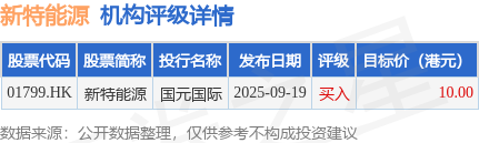 截至2025年11月24日收盘,新特能源(01799.HK)报收于7.16港元,下跌1.38%,成交量255.05万股,成交额1822.18万港元。投行对该股的评级以买入为主,近90天内共有1家投行给出买入评级,近90天的目标均价为10港元。国元国际最新一份研报给予新特能源买入评级,目标价10港元。