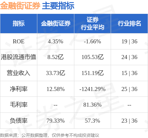 金融街证券港股市值8.52亿港元,在证券行业中排名第24。主要指标见下表: