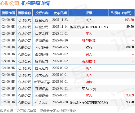 截至2025年11月26日收盘,心动公司(02400.HK)报收于70.5港元,上涨1.37%,成交量201.27万股,成交额1.41亿港元。投行对该股的评级以买入为主,近90天内共有6家投行给出买入评级,近90天的目标均价为91.9港元。国金证券最新一份研报给予心动公司买入评级,目标价103.2港元。